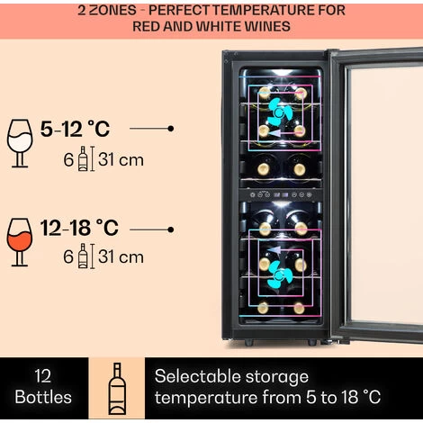 DISPLAY YOUR EXQUISITE BOTTLE COLLECTION: House 12 bottles of your best and finest wines in this wine cooler fridge and share them with guests. Temperature controlled wine fridges help preserve flavours and aromas, keeping wines fresher for longer.
