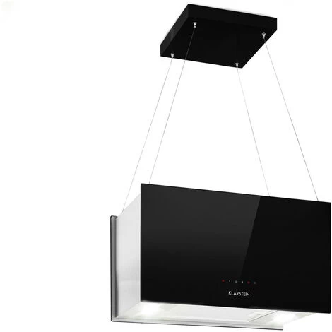 The outward appearance of the Klarstein Kronleuchter L island hood is stylish in Pure Ambience Design. The front and back are finished in luxurious black safety glass while the sides are finished in brushed stainless steel.