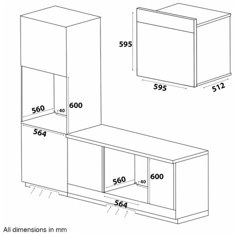 Product dimensions (mm): W595 x D512 (531 with door) x H595